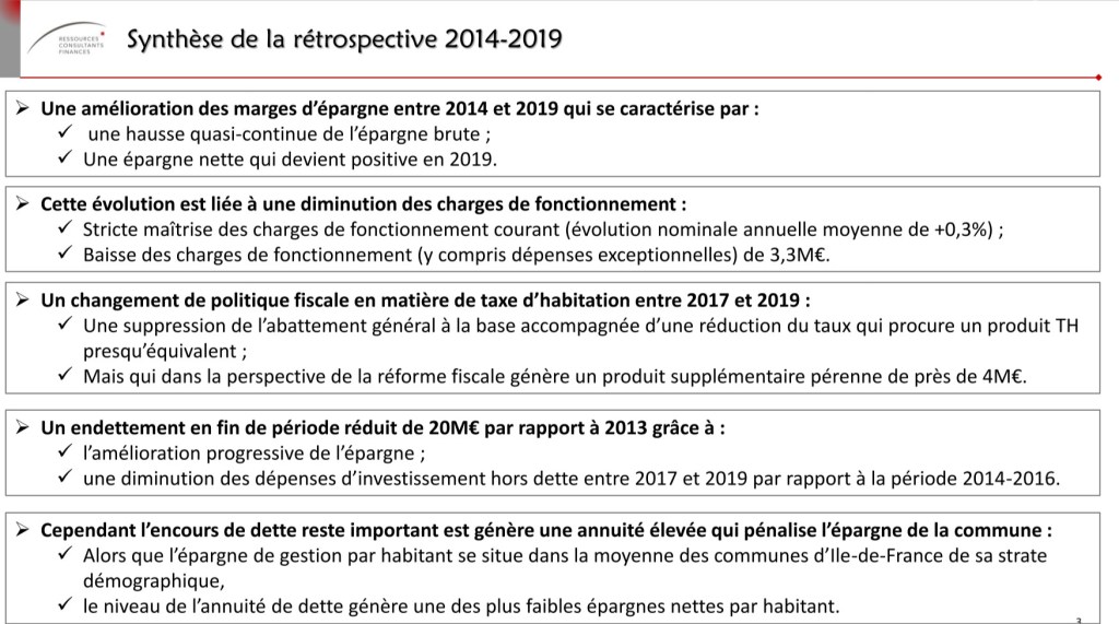 - Equipement publics : centre social Brassens -1.2 M€, école Curie, -2.5 M€, -470 K€ sur Mainguy Maternelle qui est terminée, -65 K€ sur rénovation salle Andrée Remond également terminée, -500 K€ sur élémentaire Mainguy non lancé cette année ;