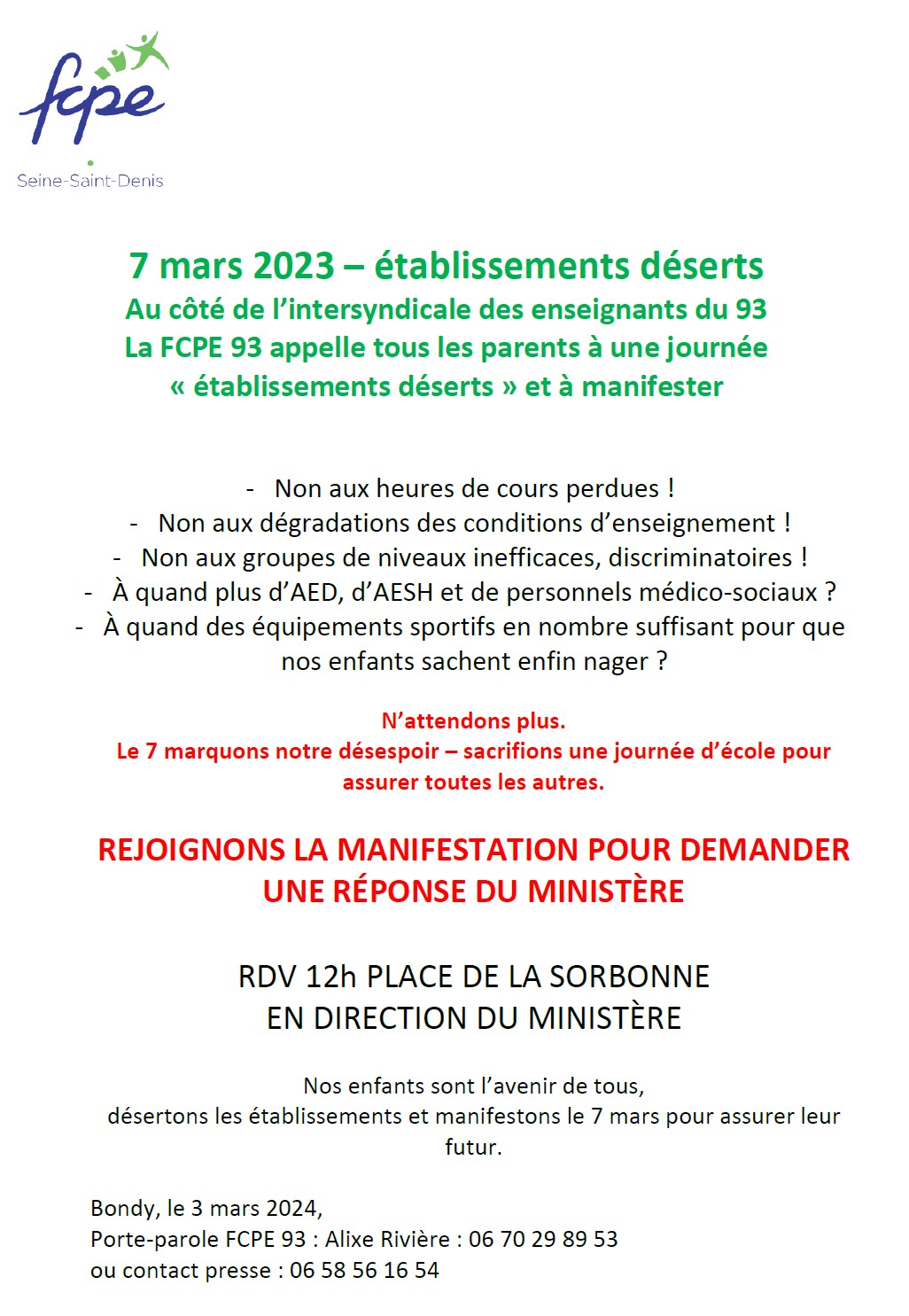 Soutien total aux élèves, parents d’élèves et enseignants engagés dans la lutte pour obtenir un plan de relance pour la Seine Saint Denis.
