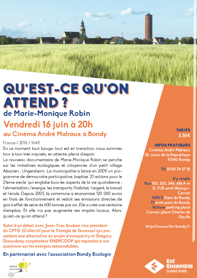 Je profite de cette tribune pour vous rappeler que le 29 juin à 19h se tiendra la réunion de concertation Plan climat, à la gendarmerie. Cette réunion ouverte à toute personne désireuse de s’impliquer et de donner son avis, permettra de préciser les actions issues de la concertation au niveau de l’agglomération et de travailler sur les pistes en accord avec les enjeux de Bondy. La réunion territorialisée permettra aux élus, agents, habitants, associations etc. de faire une analyse des actions pertinentes pour notre territoire.