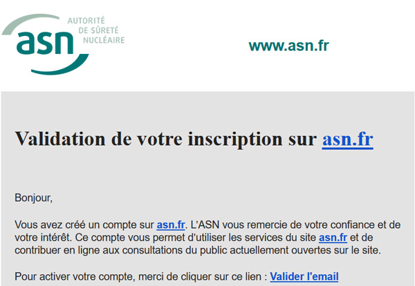 2) ETAPE 2 : vous avez dû recevoir un e-mail de l’ASN. Validez votre compte !